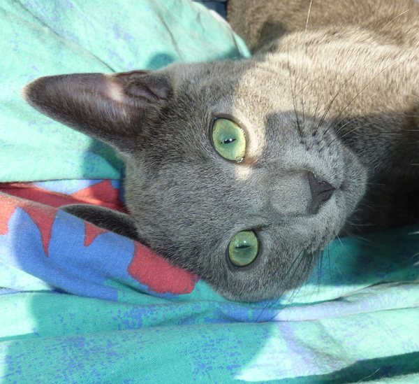 Moi, INGO de BELLEDONNE, je suis né le 24 avril 2013 chez Doris THEIL à Grenoble. Les maitres de la Chatterie du Chemin des Rêves Bleus, Anne et Jean-Pierre, sont venus me chercher à Grenoble et m’ont choisi par rapport à mes deux autres frères. On aurait dit des maquignons, regardant mes oreilles, la longueur de ma queue, la forme de ma tête, la couleur de mon pelage et j’en passe. J’avcais 3 mois et demi. Je vous explique : je suis censé bientôt remplacer Silver du Bleu d’Azur, l' »étalon maison » et à ce titre régner sur le cheptel féminin de la maison : cela me plait bien et je me suis tout de suite bien entendu avec les « dames » de la maison, surtout ANATHAI qui ressemble, je pense, à ma mère et que je tréte de temps en temps, pour le fun : Anne et Jean-Pierre n’aiment pas cela du tout. Je m’entends actuellement très bien avec Silver, je passe les journées avec lui et c’est mon copain et je passe les nuits dans la chambre et partage le lit avec les « dames ». C’est la vie révée !