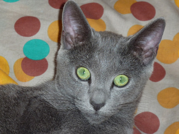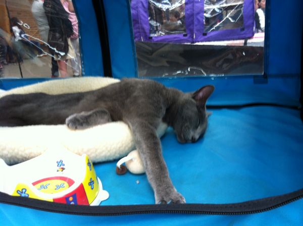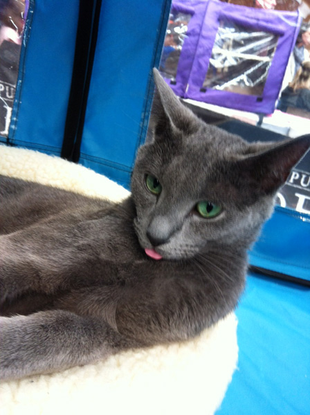 D’ici quelques mois, m’a t’on expliqué, Silver va étre opéré, « castré » comme on dit et de ce fait il perdra sa qualité de seigneur reproducteur de la chatterie à mon profit. Moi, cela me plait mais j’espère qu’il ne sera pas fâché et restera mon copain.! C’est d’autant plus amusant, et cela explique peut être que l’on s’entend bien (la fameuse voix du sang !) que Silver est mon … arriere garand père maternel, son fils EROS du Chemin des Reves Bleus étant mon grand père. Ouf, c’est compliqué la généalogie. Le monde du Bleu Russe est donc petit mais Bernard BOUCHER, le savant spécialiste de la généalogie de notre race, dit que cela reste très correct du point de vue consanguinité vis à vis de mes futures « promises ». J’ai été à ma première exposition en Hollande, histoire de m’habituer et j’ai fait ma deuxième exposition le 29 septembre à Maubeuge ou j’ai bien plu et j’ai été Nominé Best in Show. mes yeux sont déjà, dit on, très verts pour mon age et mon tipping excellent.